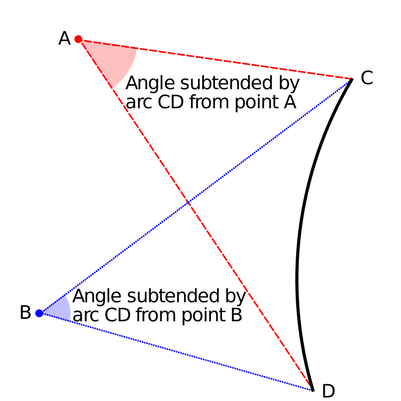 Ángulo subtendido: En geometría, subtender es unir con una línea recta los extremos de un arco de curva o de una línea quebrada.