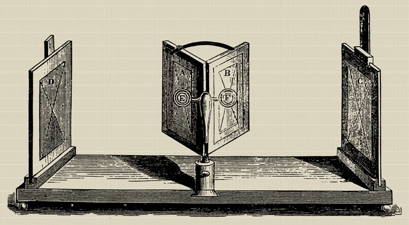 Estereoscopio de espejo de Wheatstone. Xilografía 1840 (autor desconocido).