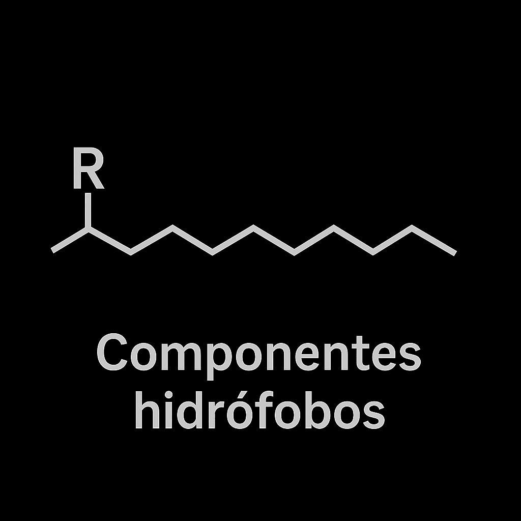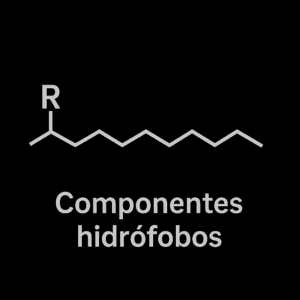 Los componentes hidrófobos son, por lo general, no polares. Entre ellos se encuentran los hidrocarburos, alcoholes pesados como el alcohol amílico, aceites minerales y ciertas resinas fotográficas. Su estructura química impide la formación de enlaces de hidrógeno con el agua, lo que provoca su rechazo.