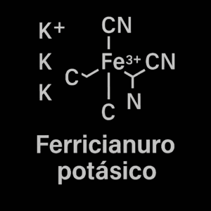 | Ferricianuro potásico | K₃[Fe(CN)₆] | 329,25 | Cristales rojo rubí | Alta en agua; baja en alcohol |