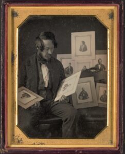 Friedrich Langenheim, alrededor de 1850, mirando talbotipos. Autor desconocido.