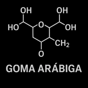 | Goma arábiga | Indeterminada (mezcla de polisacáridos) | Indeterminado | Terrones blanco-ámbar | Soluble en agua, insoluble en alcohol y éter |