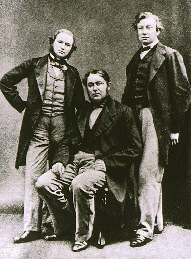 Gustav Kirchhoff (izquierda), Robert Bunsen (centro) y Henry Enfield Roscoe (derecha).