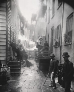 En 1887 empezó a tomar fotografías con luz relámpago de los barrios bajos de Nueva York para captar el ambiente social y denunciar el modo en que vivía la población.