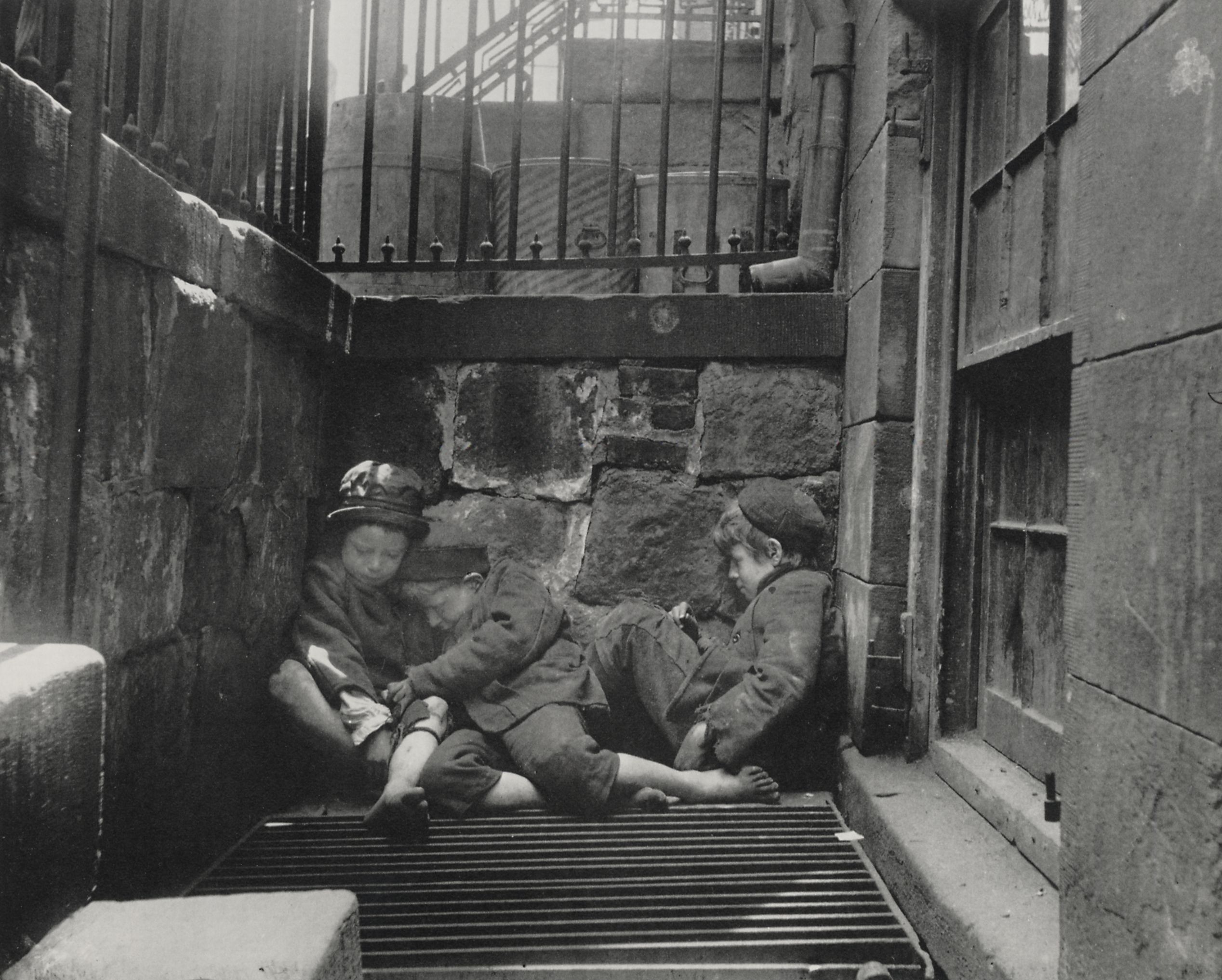 «Nomads of the Street», niños de la calle en sus dormitorios, Nueva York, 1890, Foto: Jacob Riis.