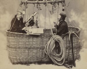 “Al salir de la nube a la 1 h. 17m. Entramos en un torrente de luz, con un hermoso cielo azul sin una nube encima de nosotros, y un magnífico mar de nubes debajo, cuya superficie variaba con infinitas colinas, montículos, cadenas montañosas y muchas masas blancas como la nieve que se elevaban desde allí. Aquí intenté tomar una vista con la cámara, pero estábamos subiendo demasiado rápido y girando demasiado rápido para que pudiera hacerlo; el torrente de luz, sin embargo, fue tan grande que lo único que habría necesitado habría sido una exposición momentánea, ya que el Dr. Hill Norris amablemente me había proporcionado placas secas extremadamente sensibles para ese propósito” (The Photographic News, 6:210, 444, 1862).