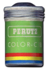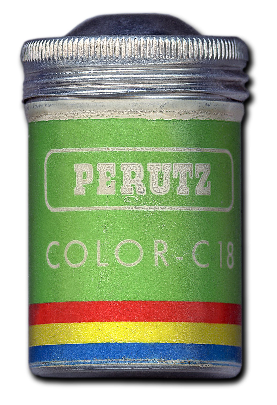 Envase de la película en color reversible de luz diurna Perutz C 18 (18 DIN), anterior a 1964. Foto: Mediatus.