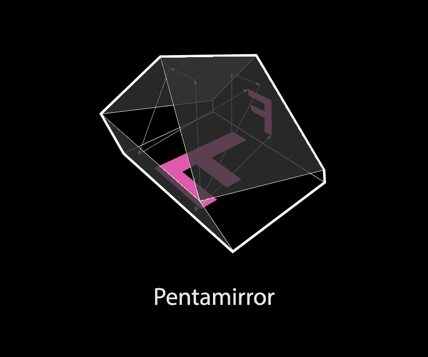 NdelE: El pentamirror en lugar del bloque sólido de vidrio del pentaprisma, utiliza tres espejos para realizar la misma función. Esto es más económico y ligero, pero generalmente produce una imagen en el visor de menor calidad y brillo.