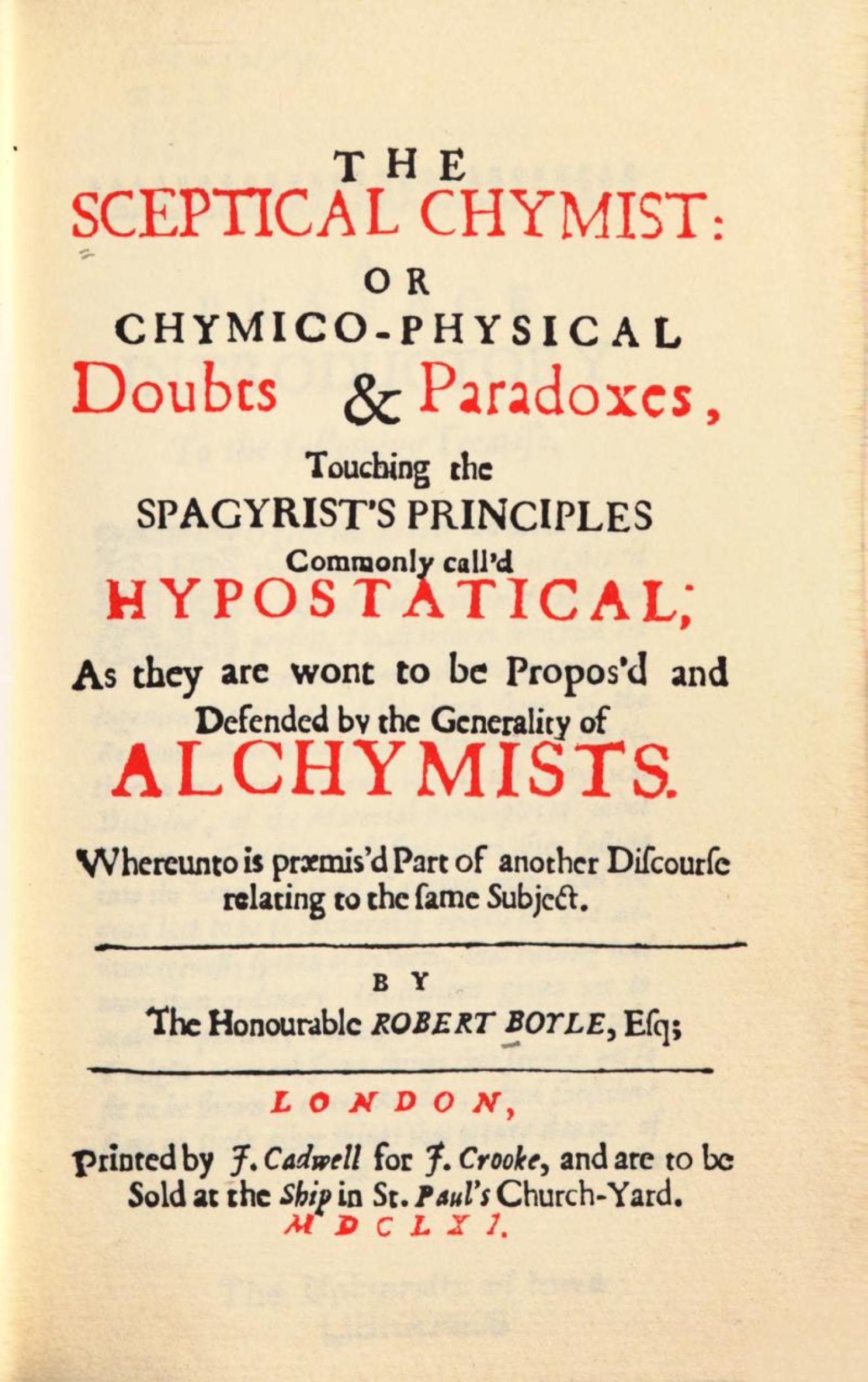 Portada de la primera edición de The Sceptical Chymist, 1661.