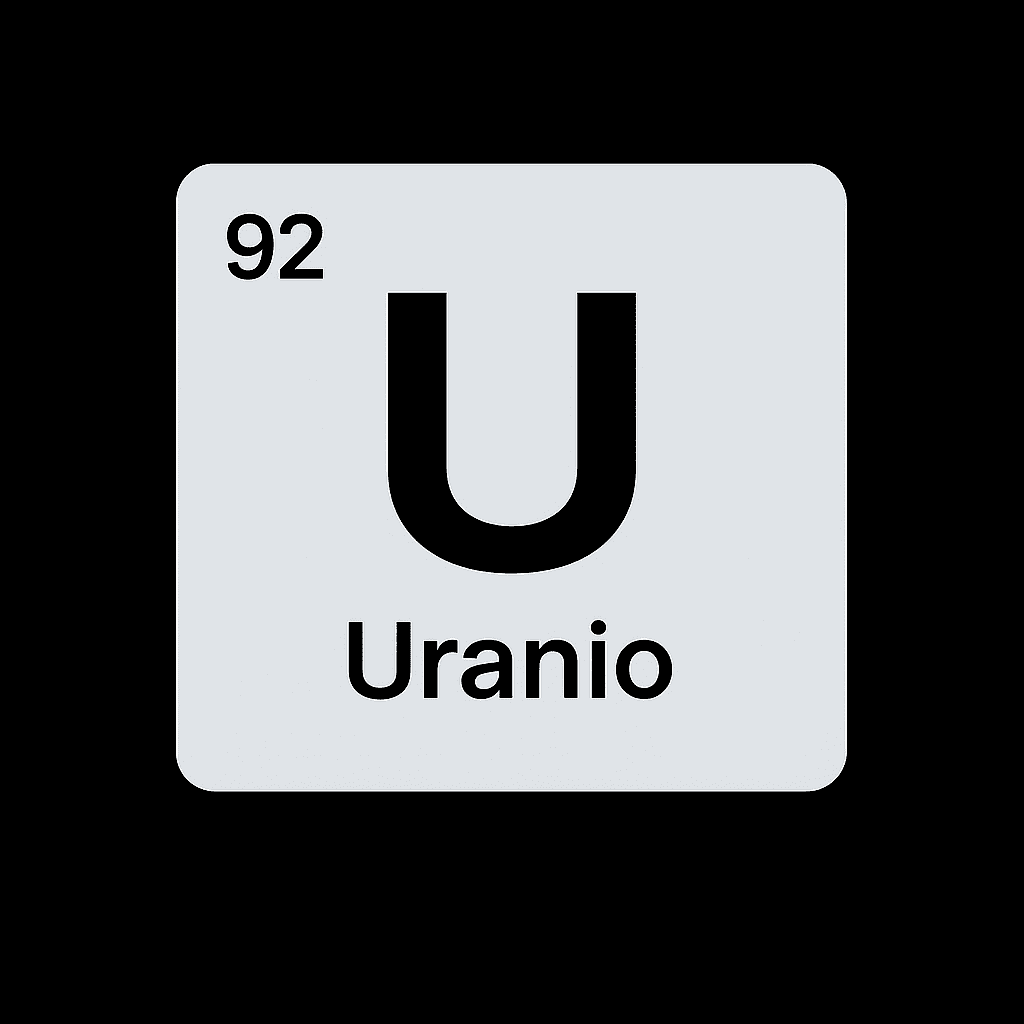 | Uranio | U | ≈ 238,03 u | Metal plateado-gris, muy denso y radiactivo | Insoluble en agua; forma sales solubles (uranilos) |