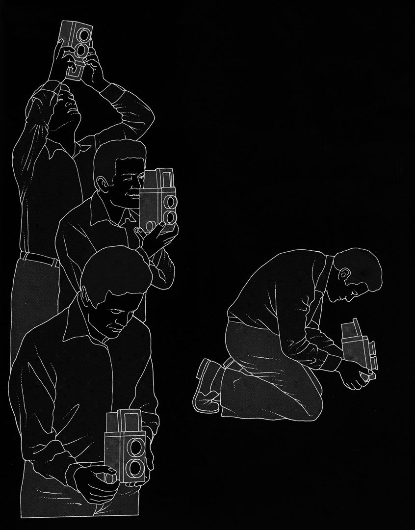 NdelE: El uso de cámaras con visor de cintura, como la Rolleiflex, introduce una dimensión cultural en la práctica fotográfica. La gestualidad corporal del fotógrafo, inclinado hacia abajo, es percibida como un gesto de reverencia y recogimiento, menos invasivo que llevar la cámara al rostro, lo que favorece la confianza con el retratado. Además, la mirada compartida sobre la pantalla de enfoque crea un espacio de interacción abierto y menos autoritario.