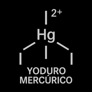 | Yoduro mercúrico | HgI₂ | 454,47 | Polvo rojo escarlata | Ligera en agua; completa en soluciones de KI, sulfito o tiosulfato |